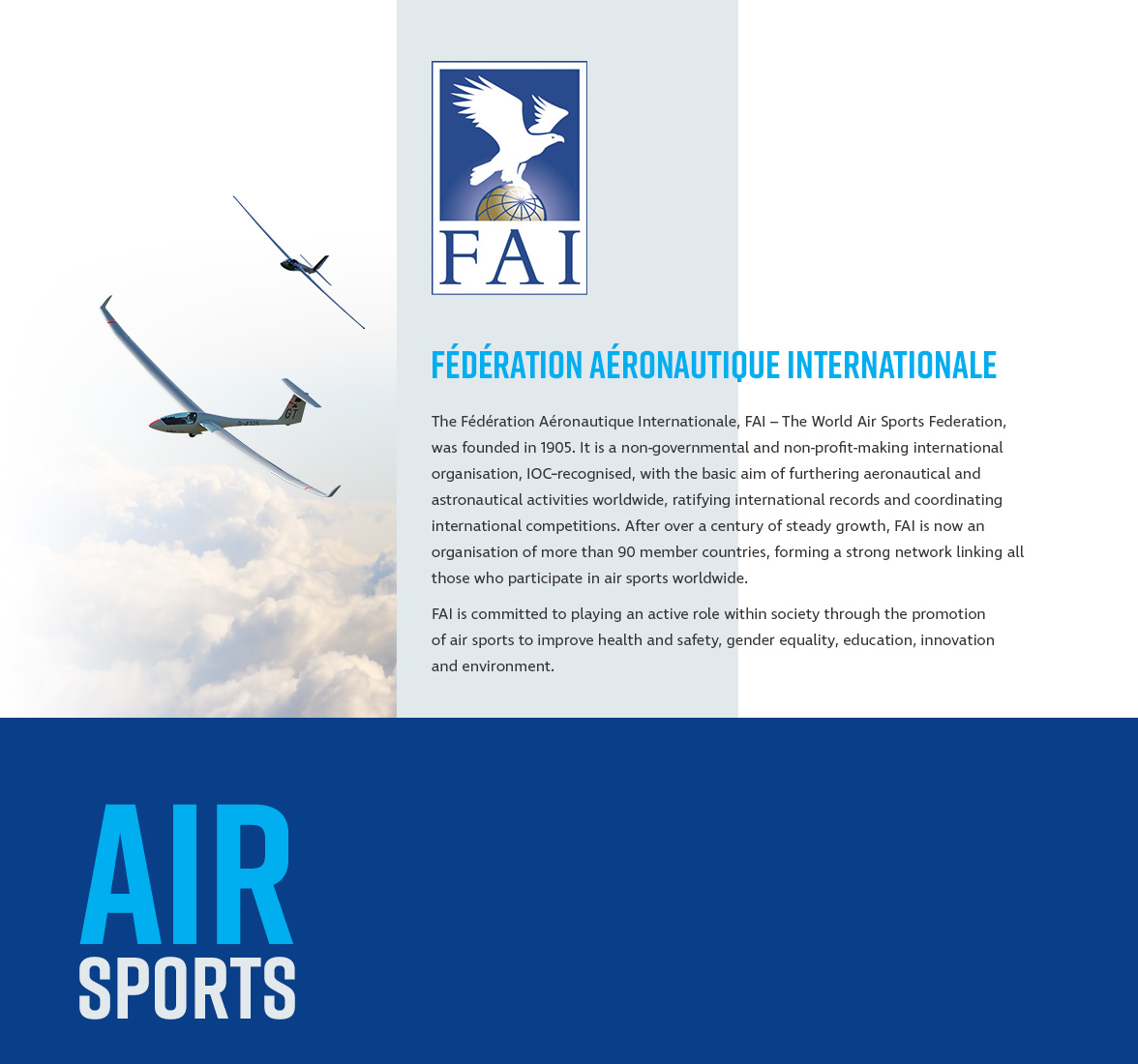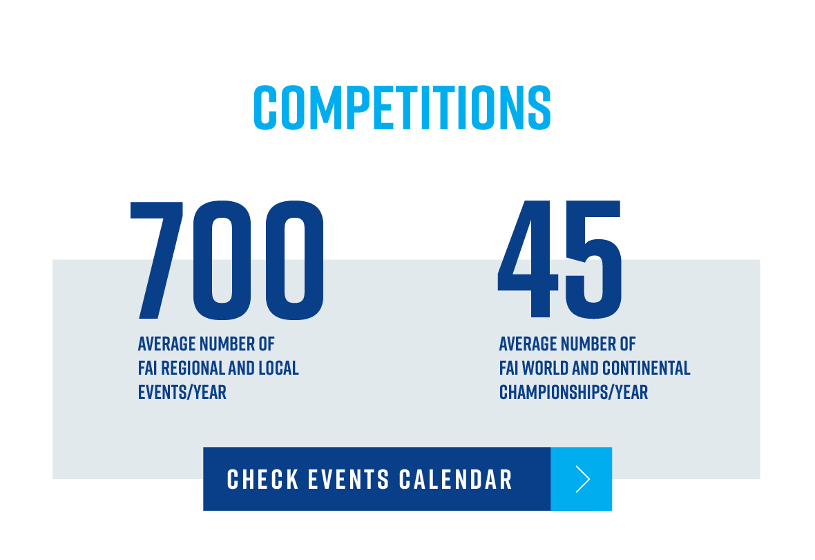 AeromodellingAmateur Built & Experimental AircraftBallooningDronesGeneral aviationGlidingHang glidingMicrolights & paramotorsParaglidingPower & glider aerobaticsRotorcraftSkydivingSpace Trending News See all news Twitter Facebook Champions 07 Jan 2026 Drone Racer Yuki Hashimoto nominated for The World Games Athlete of the Year 2025 Twitter Facebook Other events 06 Jan 2026 First flights for youngsters at French-German International Balloon Camp – Agencourt 2025 Twitter Facebook Commissions 23 Dec 2025 Season's greetings! Twitter Facebook Commissions 18 Dec 2025 FAI CIVL Awards 2026 reminder Twitter Facebook Commissions 19 Dec 2025 CIVL Plenary 2026 Twitter Facebook Anti-Doping 15 Dec 2025 World Anti-Doping Agency updates prohibited list for 2026 Twitter Facebook FAI 15 Dec 2025 FAI Secretariat hours: Christmas and New Year Twitter Facebook Training 12 Dec 2025 Inspiring the Next Generation of Aeronauts: U.S. Youth Balloon Camps Soar in 2025 Twitter Facebook Anti-Doping 10 Dec 2025 Anti-Doping: FAI Prepares for Major 2027 WADA Code Changes after World Conference Twitter Facebook Commissions 08 Dec 2025 CIAM Bureau Meeting Highlights Social media: Contact Us NewsletterGeneral conference Rankings EnvironmentEducationMedico-physiological